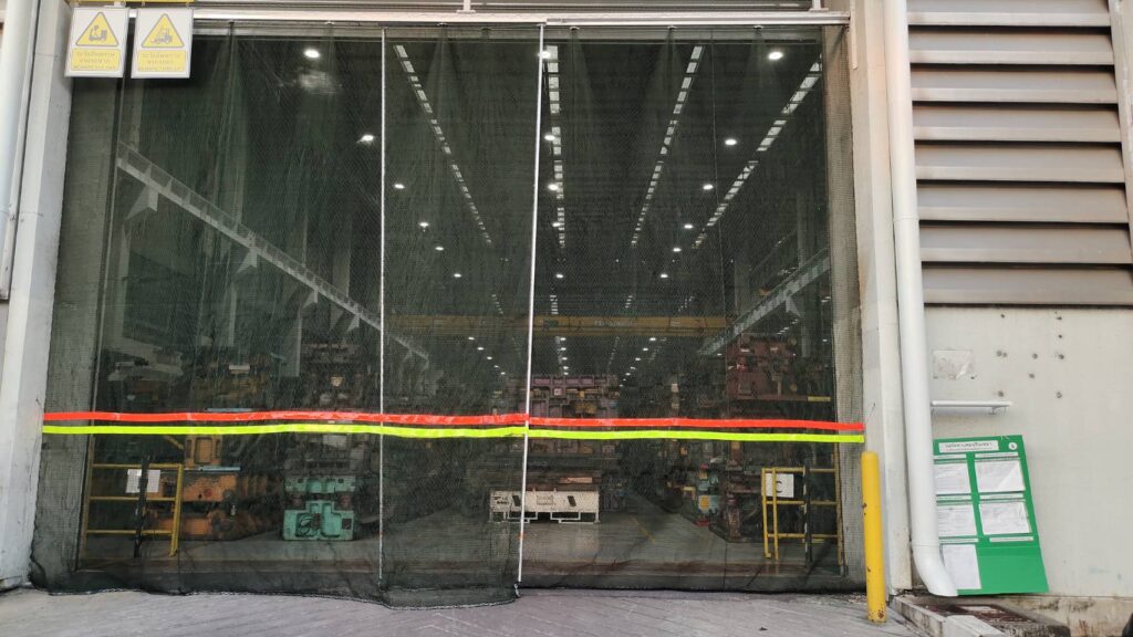 แนวทางเลือกอีกวิธีหนึ่ง เพื่่อนำมาติดตั้งกันนก บริเวณทางเข้า – ออก ของ โรงงาน คลังสินค้า คือ ม่านเชือกไนล่อนกันนก สามารถป้องกันนกไม่ให้เข้ามารบกวน บริเวณสถานที่ทำงานที่มีการใช้งานเข้า – ออกอยู่ตลอดเวลา ผลิตภัณฑ์นี้ผลิตจากเชือกไนลอน ขนาด 10 มิลลิเมตร ระยะห่าง 1.5 เซนติเมตร ติดตั้งแบบลอยจากพื้น 5.0 เซนติเมตร RAIL อุปกรณ์ยึดจับ ( ร้อยเชือก ) รางยึดเหล็กตัว C ขนาด 2×4 หนา 2 มิลลิเมตร